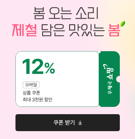 우체국쇼핑은 봄나물, 신선김치, 봄과일 등 제철 상품에 대해 12% 할인 쿠폰을 제공하는 '봄철 할인전'과 품질 인증 1등급 한우, 한라봉 등 특산품을 최대 40% 할인하는 '럭키 스페셜티 인기차트' 등 다양한 기획전을 준비했습니다.