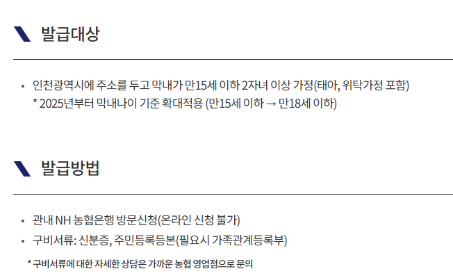 - 신청 자격: 세 자녀 이상 가정 (막내가 만 18세 미만일 경우 유효)