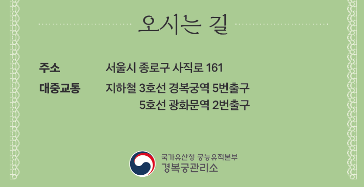 - 관람 가능 시간: 경복궁 운영 시간과 동일 (09:00~18:00, 월요일 휴무)