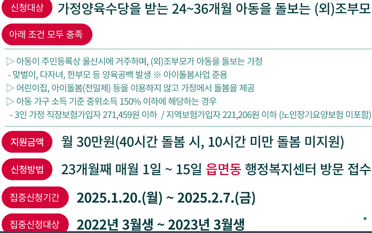 정부는 2025년 이후 손주 돌봄 수당을 전국적으로 확대하고, 금액도 상향 조정할 예정입니다. 관련 내용은 지자체 공고 및 복지부 홈페이지를 통해 수시로 확인하는 것이 좋습니다.