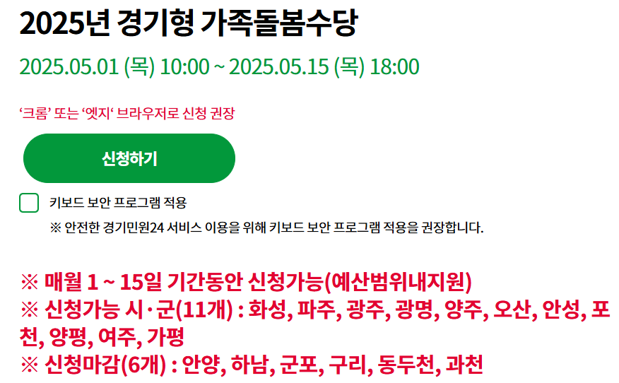 | 경기도 | 25만 원 | 일부 시군 별도 신청 필요 |