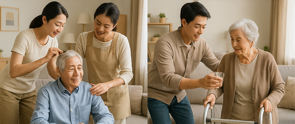 - 기본 서비스: 재가 돌봄, 가사 지원(청소, 세탁, 식사 준비 등)